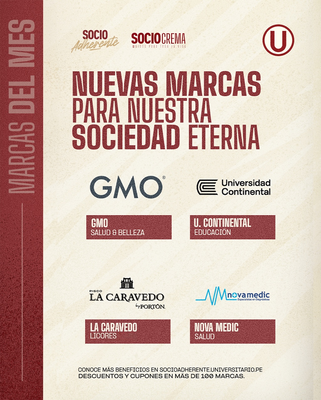 ¡Tenemos excelentes noticias! Más marcas se suman para ofrecer exclusivos beneficios a nuestros Socios Adherentes. Descubre todo lo que puedes disfrutar siendo parte de esta gran comunidad.